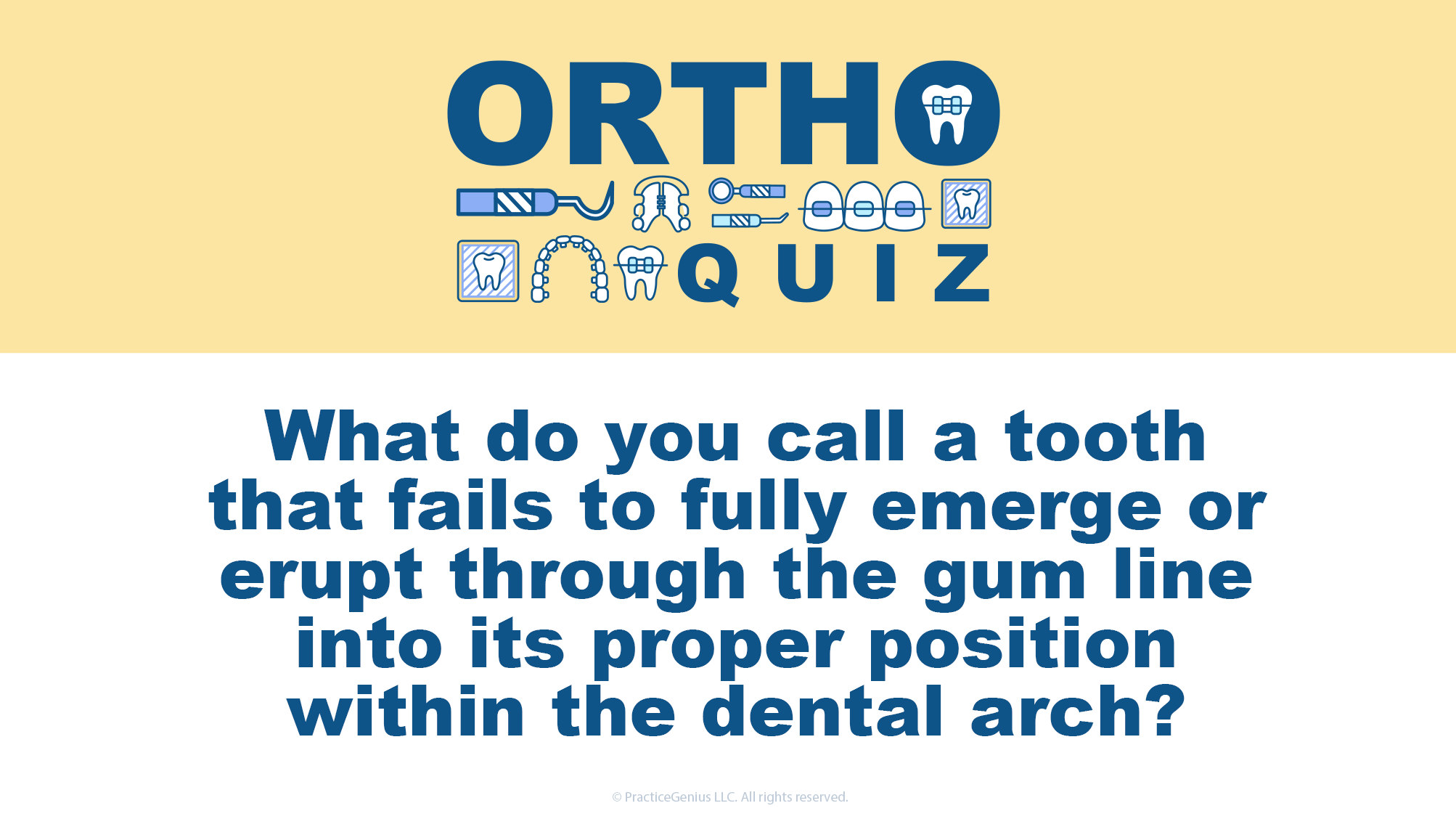 What do you call a tooth that fails to fully emerge or erupt through the gum line into its proper position within the dental arch? Comment below ⤵️ Check out our newest survey that's available in the Hub between October 8th, 2025 and October 14th, 2025 to earn 2 points!